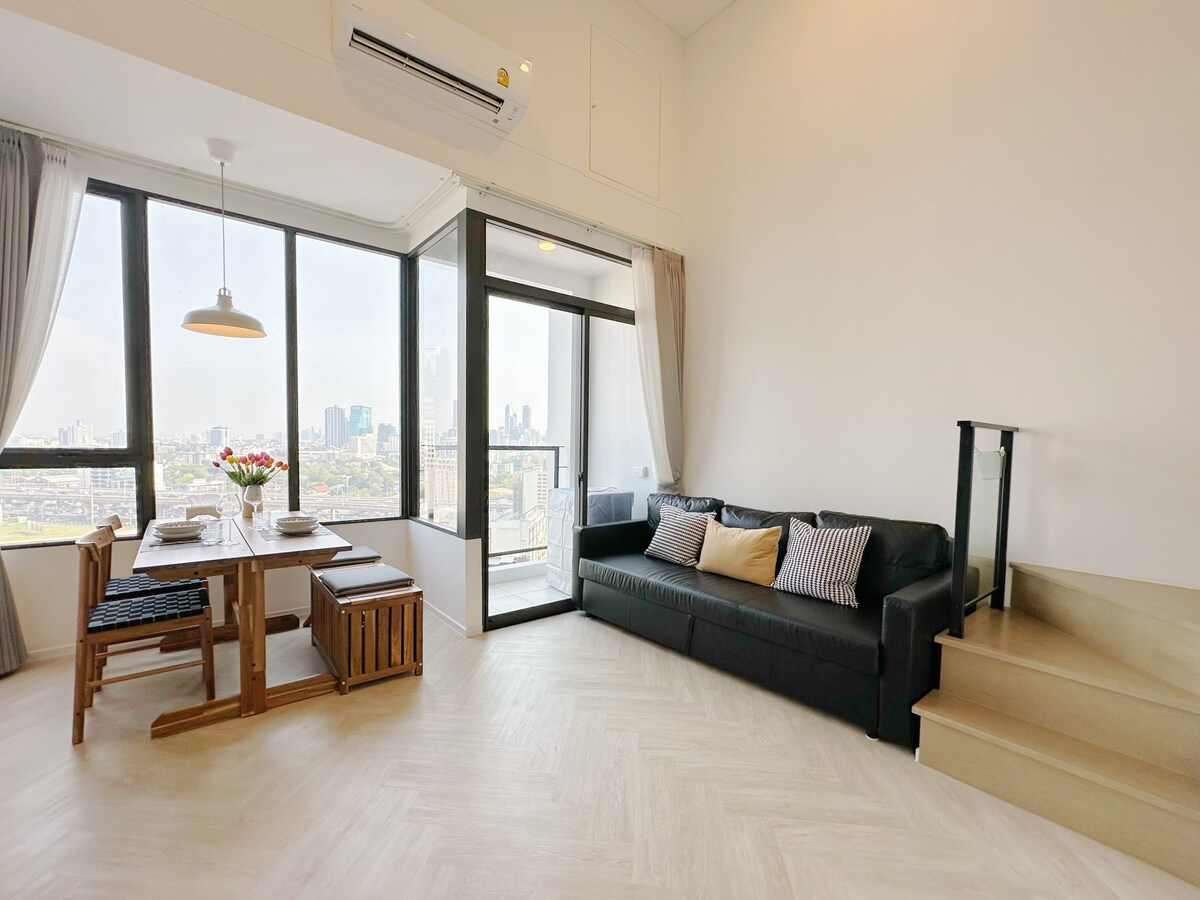 Välkommen till vår mysiga lägenhet med högt i tak på 27:e våningen i Edge Sukhumvit 23. Det är bara några steg från BTS Asok och MRT Sukhumvit. Vardagsrummet är ljust med fönster i full höjd, medan sovrummet i loftstil ger dig både sovrum på övervåningen och arbetsyta på nedervåningen med en extra säng. Bäst av allt är att poolen och gymmet ligger på samma våning, vilket gör det enkelt att koppla av och hålla sig aktiv under din vistelse.