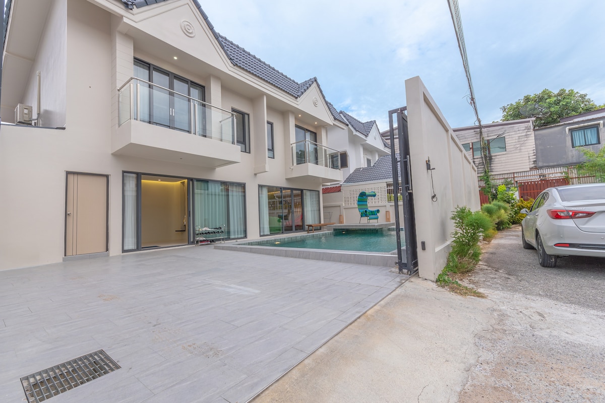 Lyxig poolvilla betygsatt som gästfavorit perfekt för familjer, grupper av vänner eller festresenärer som söker kul. Ensuite badrum. Egen pool för lata eftermiddagar. Schampo och duschgel, handdukar tillhandahålls. Grill, karaoke & biljardbord. Luftkonditionering inomhus. Denna villa ligger 6 km bilväg till Pattaya Beach och Walking Street. GRAB eller BOLT app bilar tillgängliga dygnet runt, även kl. 04:00-06:00 (efter festtimmar). Vi kommer att dela ställen för måltider, drycker, turistiska platser, kvällsevenemang och dolda pärlor.