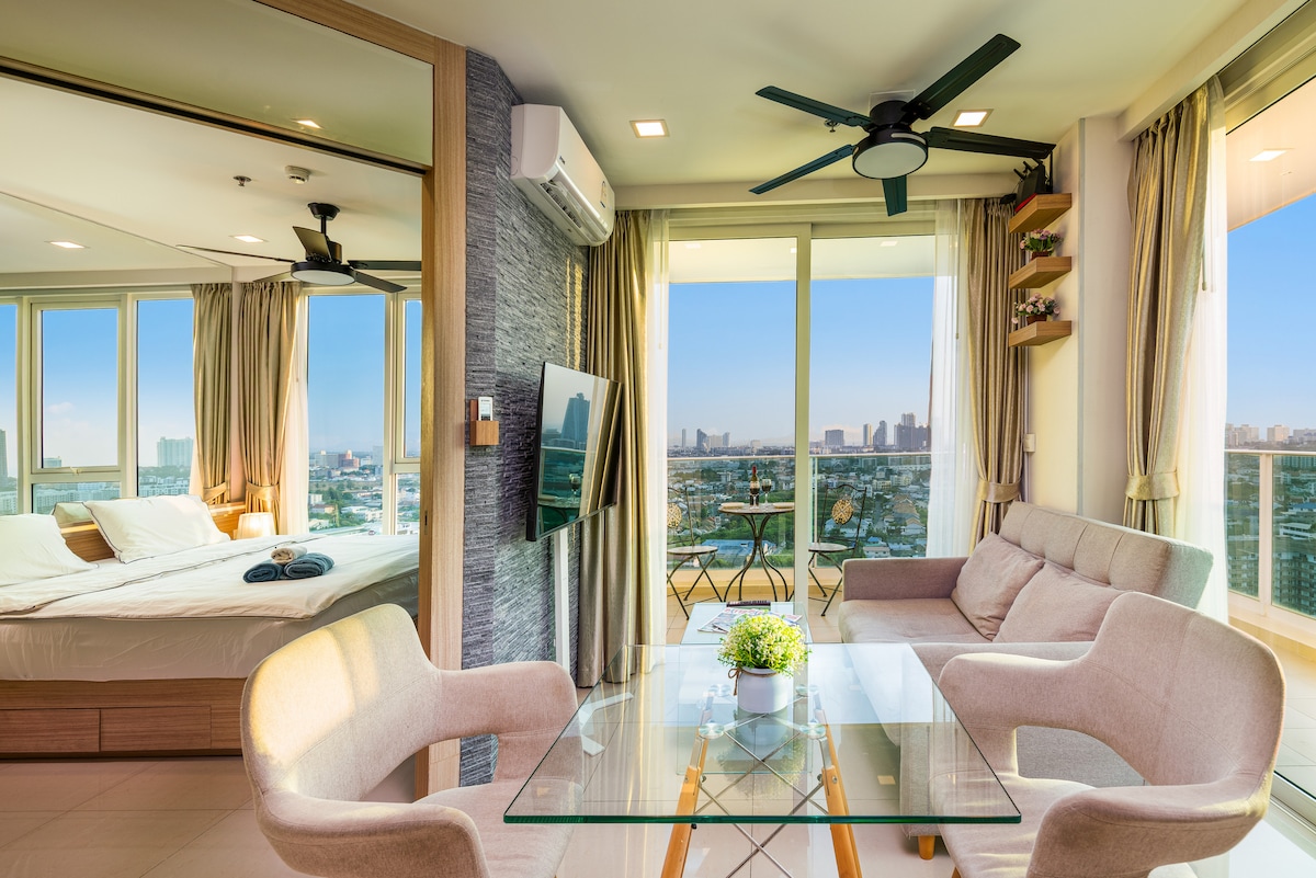"Beautiful Condo and Location is excellent. The view from the balcony in the morning was breathtaking out into the ocean" - Jason ☆ Airbnb Superhost since 2015 ❤ Stunning Sea & City view ❤ Smart TV ❤ Fast Internet ❤ 1 bedroom / studio convertible ❤ Full equipped ❤ Quiet & Relaxing ❤ Sky pool and Jacuzzi ☆ Mini mart downstairs ☆ Beach access (1 min walk) ☆ Pratumnak Night Market (10 min. walk) ☆ Walking Street & Bali Hai Pier (10 min.)