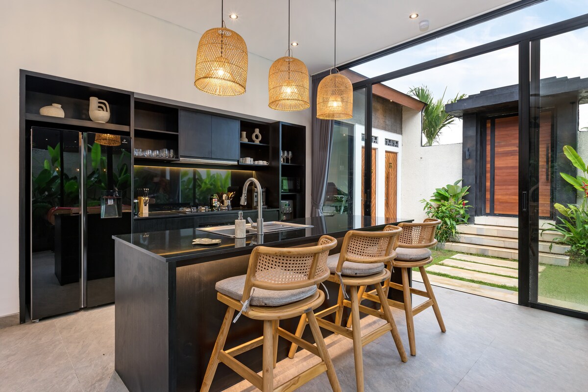 Smekmånadsvilla med enorm pool och kokosnötsträdgård. Utmärkt läge gångavstånd till alla restauranger och kaféer i Canggu. Enorm privat pool och får sol hela dagen perfekt för solning på terrassen. Två sovrum har kingsize-sängar AC och 55-tums TV + badrum. Vardagsrum med AC fullt utrustat kök, lounge matplats och Bluetooth-högtalare. Personalen kommer dagligen för städning och massagebord på plats – det perfekta sättet att koppla av. Vi är omgivna av Balis bästa kaféer och restauranger, episkt läge på Echo Beach och Batu Bolong.