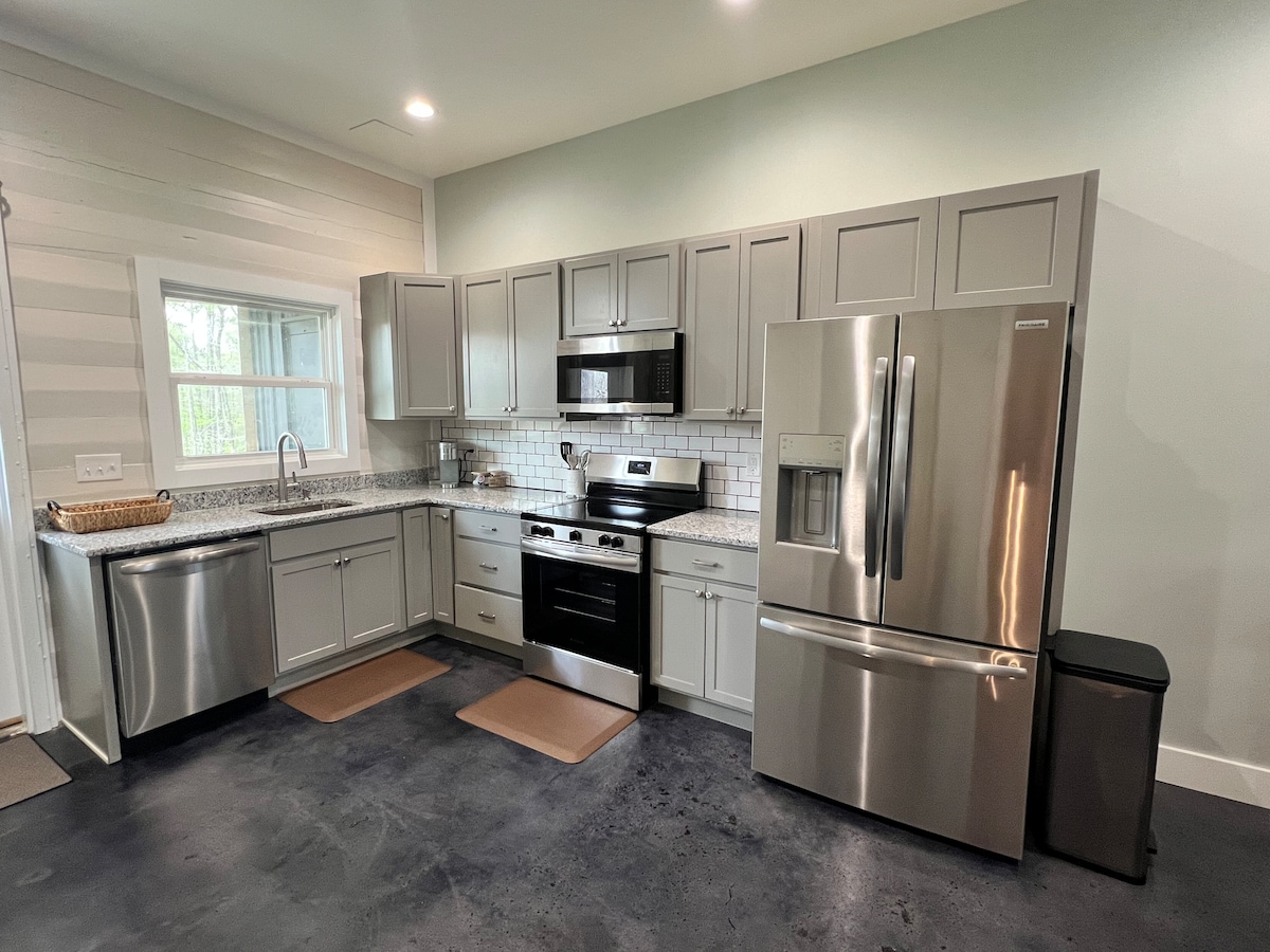 * Fråga efter evenemang och filmteam!*Välkommen till flodens bondgård! Detta rustika bondgårdshus byggdes 1890 och har nyrenoverats för att ge moderna och fräscha detaljer samtidigt som det unika kännetecknet från det gamla hemmet bibehålls, inklusive den ursprungliga skeppsöverdraget!På en och en halv tunnland vacker mark känner du verkligen att du har rymt från liv när du strövar på den rymliga bakgården eller slappnar av på verandan. Beläget 7 minuter från motorvägen, 20 minuter från Atlanta flygplats och 10 minuter från Trilith Studios
