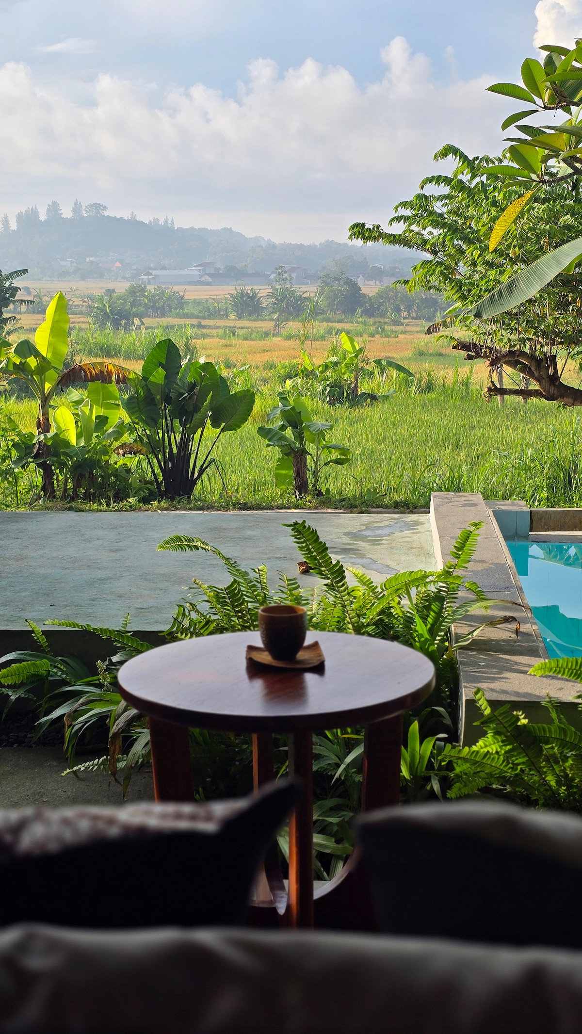 Välkommen till Padma Villa, ditt tillflyktsboende i Yogyakarta. Soldrivet 140 m² stort fristad tillverkat av återvunnet timmer. En privat bassäng med utsikt över risfälten i hantverksbyn Bangunjiwo – bara 10 minuter från stadens hjärta. Höghastighetsfiber möter slow-living-ritualer. Lyx som hedrar jorden samtidigt som staden hålls inom räckhåll.