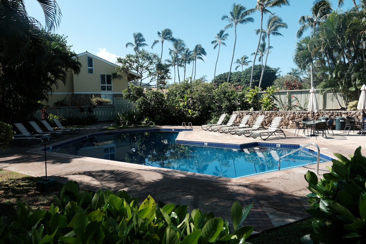 Välkommen till vår vackra lägenhet inbäddad i den drömlika North Shore of O'ahu. Vårt boende ligger i det inhägnade samhället Kuilima Estates West, inom den berömda Turtle Bay Resort. Du kommer att vara bara 5–10 minuters promenad från hisnande kustlinjer, surfplatser i världsklass, romantiska matupplevelser och oändliga äventyr till lands och till sjöss. Kuilima Estates är också det enda området på North Shore där semesterboenden är lagligt tillåtna – vilket ger dig en unik och bekymmersfri öutflykt.