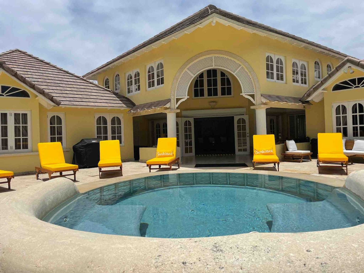 Solig villa med 4 sovrum, pool, golf, Oistins och strand