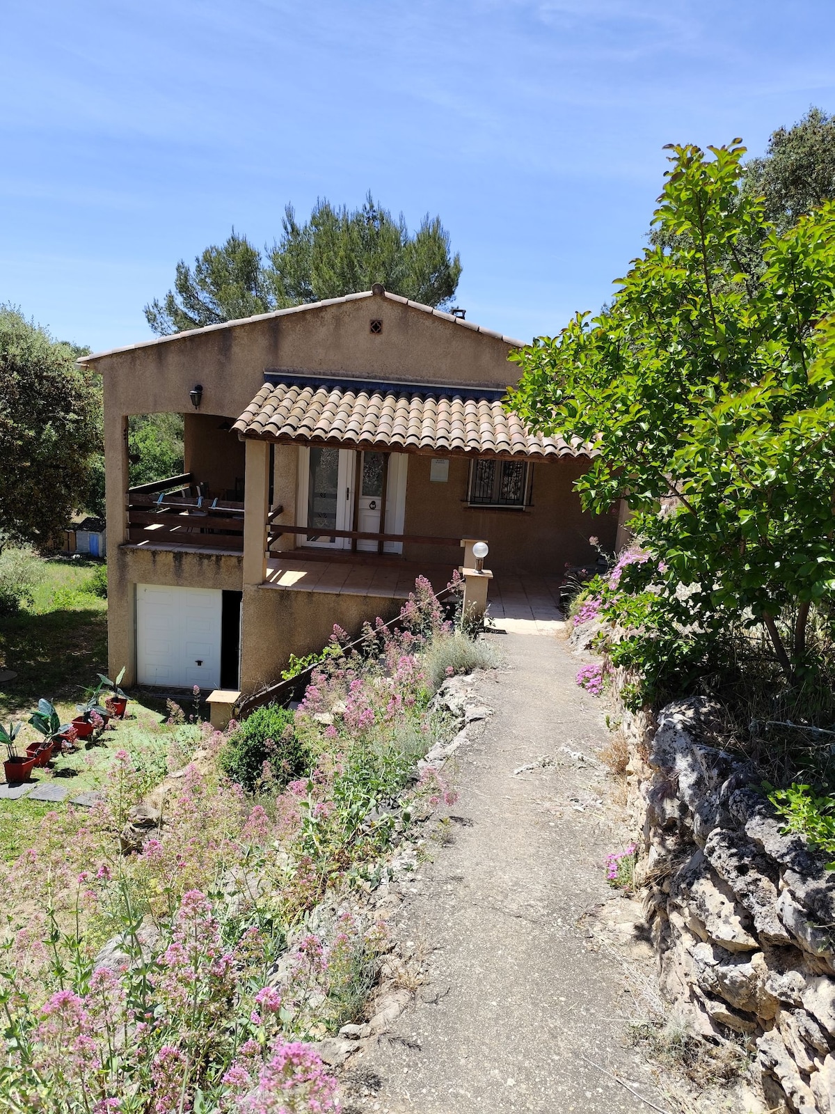 Ett vackert annex, 35 m², för 2 personer (möjlighet för 2 barn i bäddsoffan) i en stor medelhavsträdgård. Vi välkomnar dig till vår lugna egendom, 15 min. promenad från den charmiga byn Cotignac. Vi delar gärna vår pool. Cotignac är en berömd provensalsk by, 1 timme från Aix och Marseille, stränderna på Var-kusten eller den blå kusten, och 30 minuter från Verdon-ravinen och dess sjöar. English spoken.