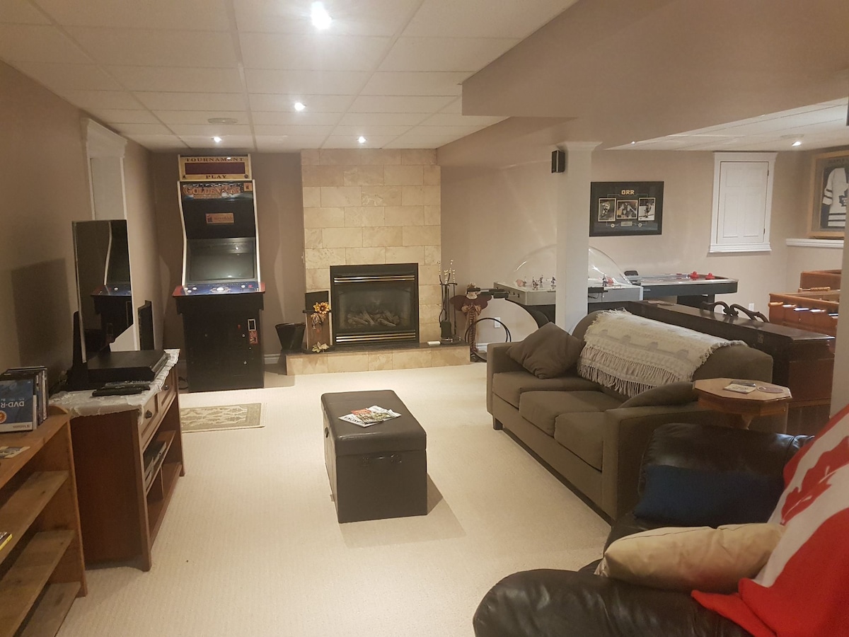 Njut av en bekväm vistelse i vår privata, nyrenoverade källarsvit. Med en queensize-seng, fullt utrustat kök, vardagsrum och tvättstuga. Beläget i ett lugnt grannskap, bara några minuter från centrala Barrie och Lake Simcoe. Gratis parkering och höghastighets-WiFi ingår. Perfekt för en avkopplande semester eller affärsresa.