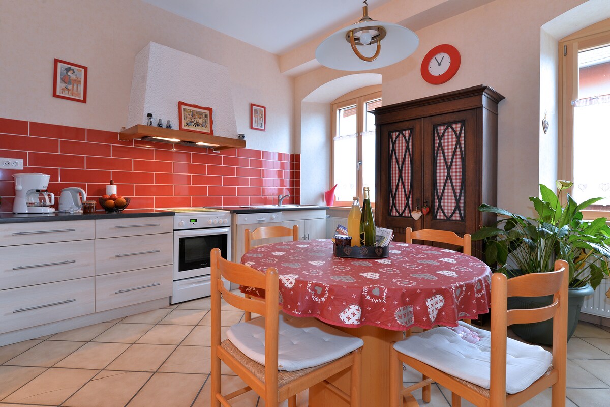 Vår bostad ligger på vinvägen 2 km från Riquewihr och 15 km från Comar, i hjärtat av en typisk Alsace by. Superior kvalitetsbostad med gästrum och lägenheter. Utomhuspool, säker privat parkering, cykel- och motorcykelparkering, mottagningsrum, bastu och hälsorum, grill, tvättstuga, gratis wi-fi, allt i en grön och avkopplande miljö. Vi är 44 km från den internationella nöjesparken EUROPA PARK. Barn under 15 år är inte tillåtna