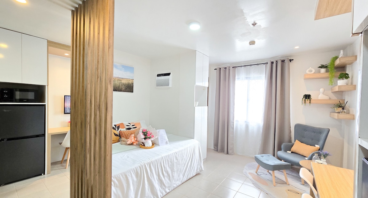 Välkommen till din mysiga semester i Mactan! Den perfekta tillflyktsorten för avkoppling eller äventyr! Njut av ett bekvämt vardagsrum med moderna bekvämligheter, inklusive ett fullt utrustat kök, plysch sängkläder och snabbt Wi-Fi. Slappna av på balkongen eller utomhuspoolen, utforska närliggande attraktioner som resorter, stränder. Beläget i ett lugnt grannskap, vi är några minuter från restauranger, shopping, nya CCLEX-bron och Mactan flygplats. Genomtänkt utformat för par eller ensamresenärer — ditt hem hemifrån väntar!