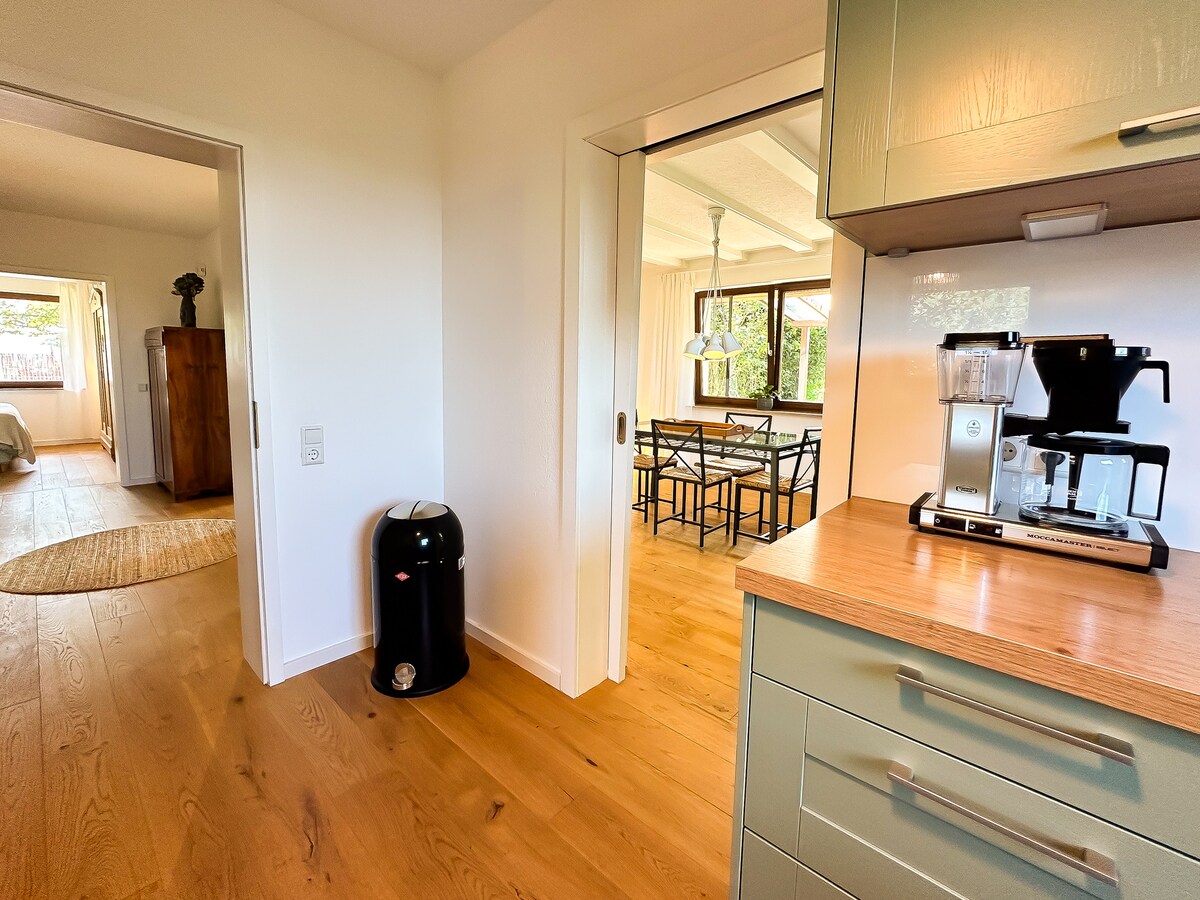 Our small house (built in 2012, awarded the Baden-Württemberg state prize for exemplary construction) is located in an old farmhouse garden in a quiet village. The furnishings are simple so that you can truly enjoy the beauty of the house and garden. We have therefore deliberately chosen not to include a television.