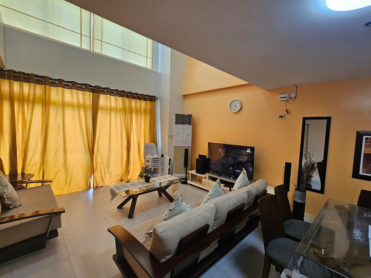 Nära Butong Beach & Bay walk, Taal Basilica Church, Evenemangsplatser som Via Elise, Grand Terraza & Abby's Garden. Även nära Public Market, snabbmat och köpcentra (SM, Robinsons & Citi mart). Lägenheten har 2 fullt luftkonditionerade sovrum, komfortrum, tvättområde, vardagsrum och gratis parkeringsplats. Gångavstånd till Alfa Mart, Mini Groceries, barber Shop, Laundry shop (DIY) och restaurang. Ett perfekt ställe att bo på, ett hem hemifrån och till och med arbeta hemifrån.