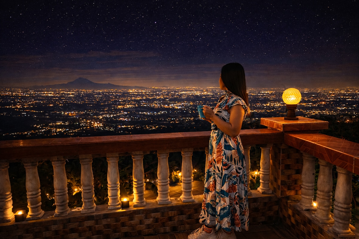 Upplev naturens skönhet med hemmets bekvämligheter! Varje tält har 1 dubbelsäng + 2 enkelsängar, luftkonditionering, fläkt, eluttag och handdukar för en bekväm vistelse. Eget badrum med wc och dusch ligger bara några steg bort. Vi har också ett rum med en dubbelsäng, bäddsoffa och eget badrum. Njut av en pool, eldstad, pingisbord, grill, komplett kök, Starlink Wifi och den bästa utsikten över Mt. Batulao. *För grupper som överstiger 16, låt oss veta, eftersom vi kan justera totalbeloppet för att rymma upp till 24.