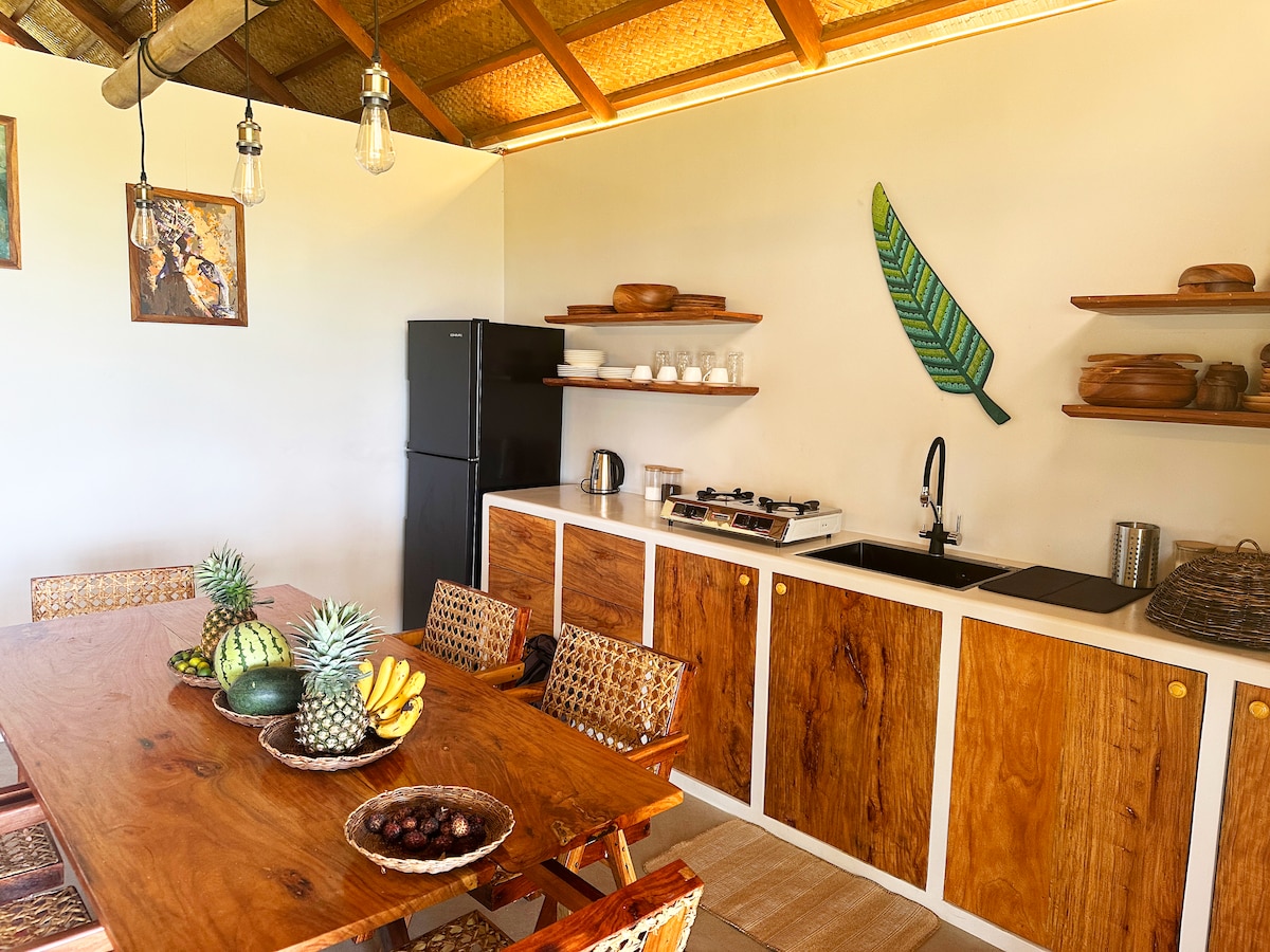 Welcome to your blissful retreat in El Nido, Ananda House. Each house offers a blend of indoor and outdoor living. Inside, you’ll find an open-plan living room and fully-equipped kitchen, an air-conditioned bedroom with a king-sized bed and blackout curtains, and an ensuite bathroom with an indoor garden. Step outside to your own private plunge pool, surrounded by lush greenery. Our houses are solar-powered, a thoughtful feature given the island’s frequent power outages.