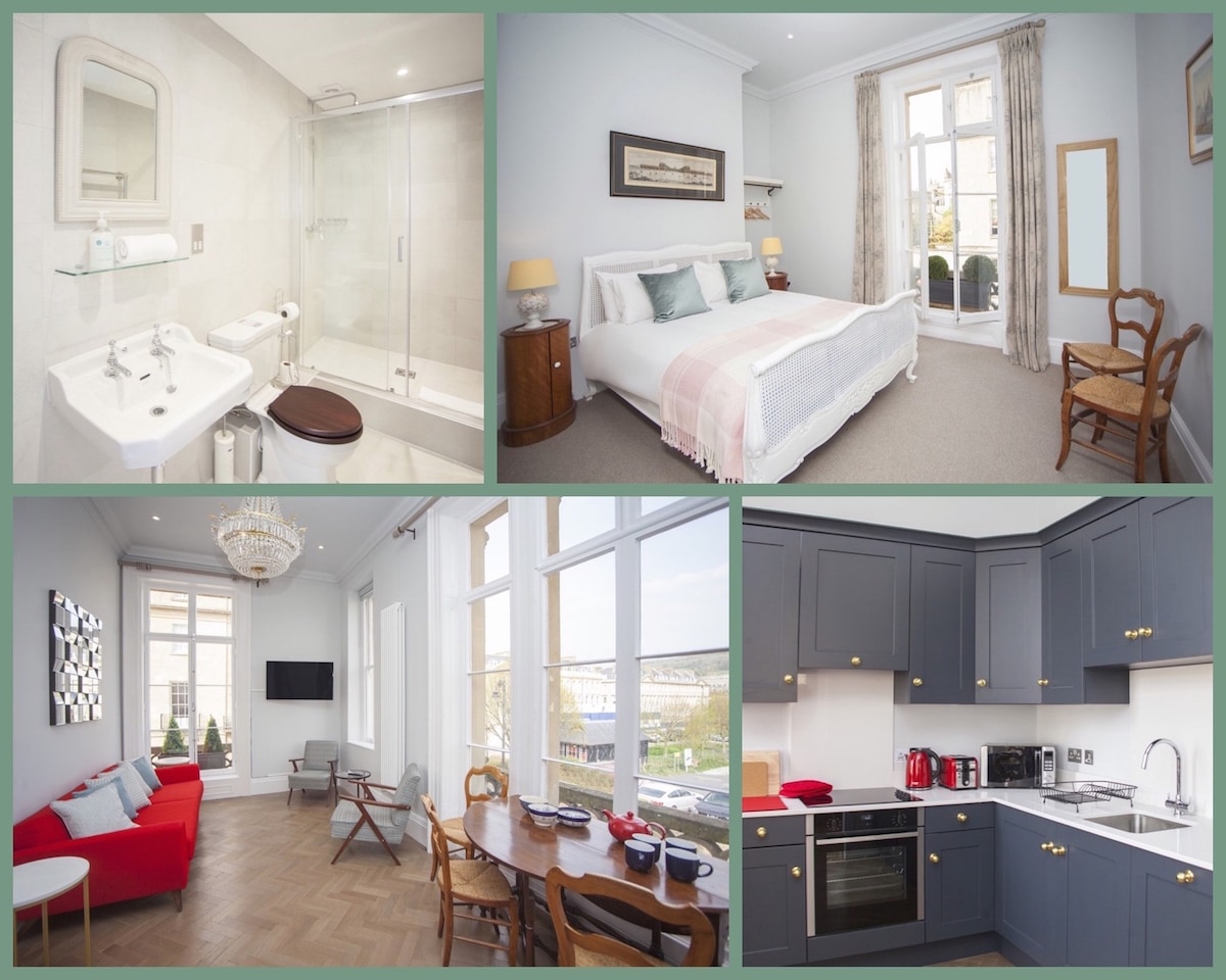 Denna överdådiga, eleganta lägenhet ligger i en av Baths eleganta halvmåne intill hantverkarna, Walcot gatuområde och bara en stunds promenad från de livliga stadsgatorna. Fastigheten har nyligen renoverats till en exceptionellt hög standard, med öppen spis, fristående "soppkärl" bad och separat regndusch. Det lyxiga köket är fullt utrustat med en Lavazza kaffebryggare, diskmaskin och bronsbeslag. Den omfattande utsikten har utsikt över Walcot gata och kullarna bortom.