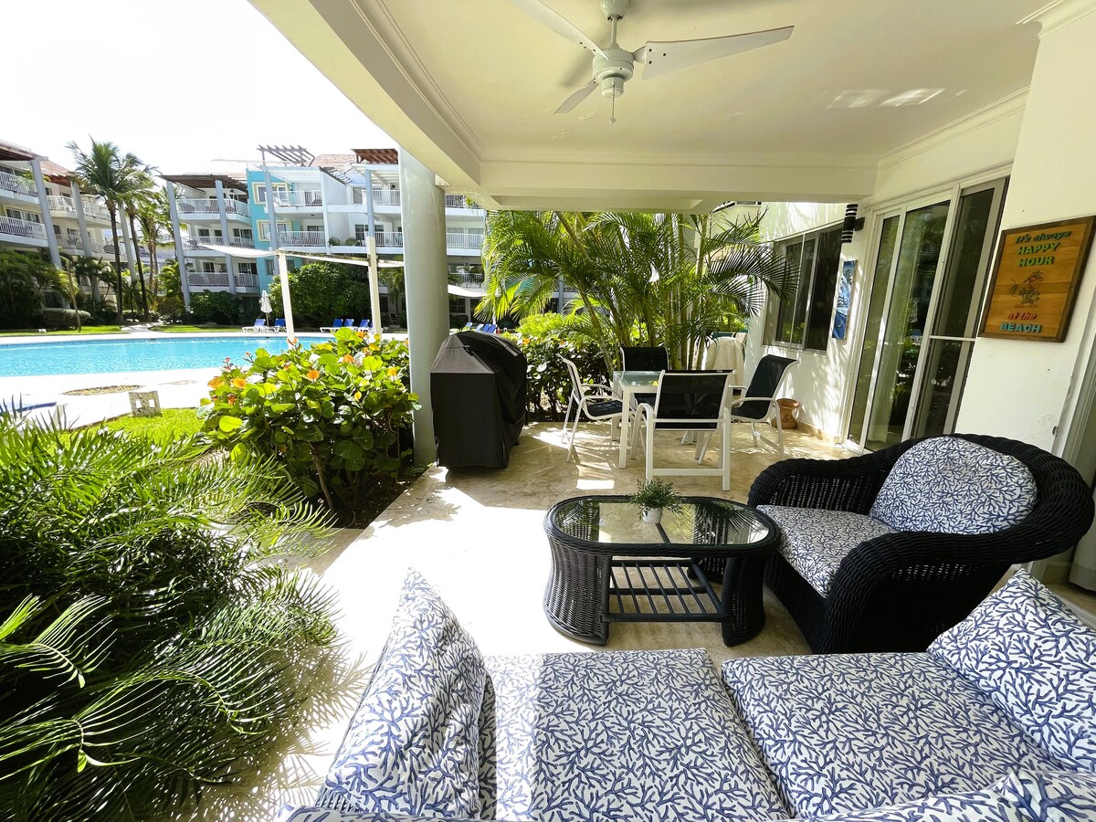 Välkommen till din tropiska semester i Punta Cana! Denna charmiga lägenhet ligger i ett gated community och erbjuder en unik privat balkong, gym, en golfbana, flera pooler och en konstgjord strand med barer och restauranger. Du är bara en kort bilresa från lokala stränder och några minuter från stormarknader, centrala Punta Cana och restauranger. Flygplatsen ligger 20 minuters bilresa bort. Njut av höghastighets-WiFi, Netflix och brädspel. ✅Vi debiterar INTE en extra avgift för elförbrukning :)
