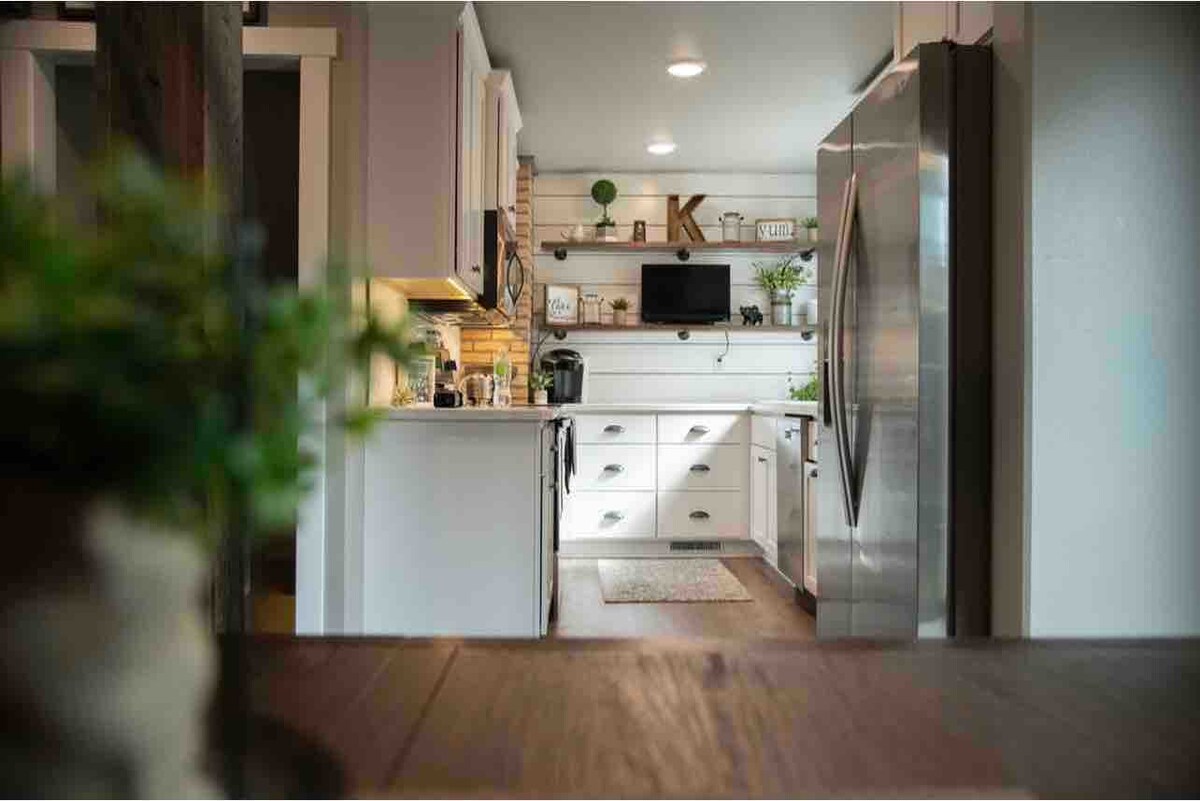 **Jag kommer att lägga till ytterligare två boenden som kommer att vara klara våren 2026 – belägna direkt bakom och tvärs över gatan från detta boende!** Strax norr om centrum, mitt i Dickinson, har detta nyrenoverade boende gott om naturligt ljus, rustik chic inredning och en stor bakgård med en helt ny bubbelpool. Beläget cirka en halv mil från motorvägen gör det en snabb enkel resa till Medora, porten till södra enheten av Theodore Roosevelt National Park.