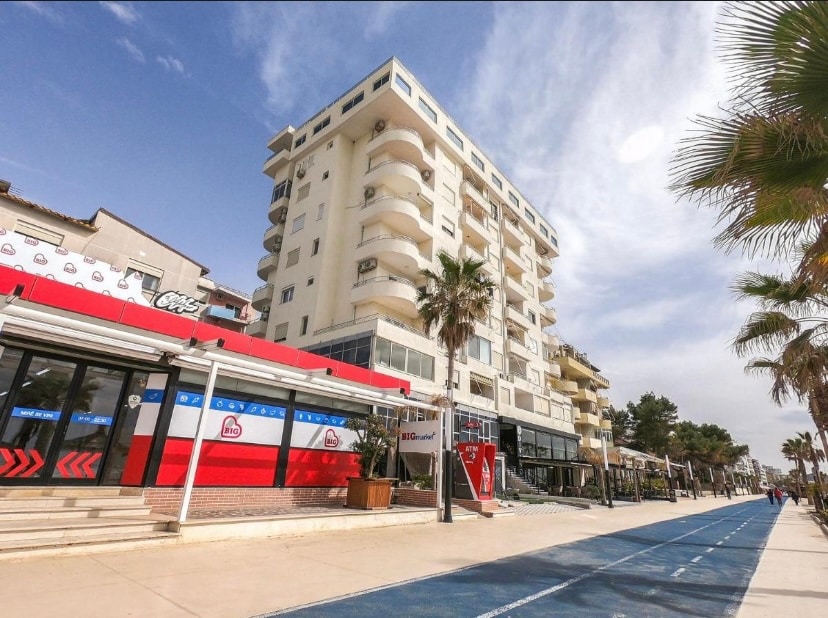 Arteg Apartments - Full Sea View ligger några steg från "Shkembi Kavajes" Beach, med full havsutsikt, i frekventerat område, framför stranden. Den ligger på 2:a våningen och är fullt möblerad. Den är lämplig för boende för 1-3 personer och lägenheten har ett vardagsrum/sovrum, kök och badrum. Lägenheten har ett kök med alla köksredskap, luftkonditionering, WiFi, TV, gatuparkering, etc. Det är nära till kollektivtrafik, taxi, promenader vid havet.