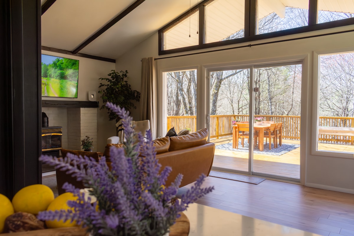 Modern & Rustic Pocono Cabin | Öppen spis | Eldningsplats