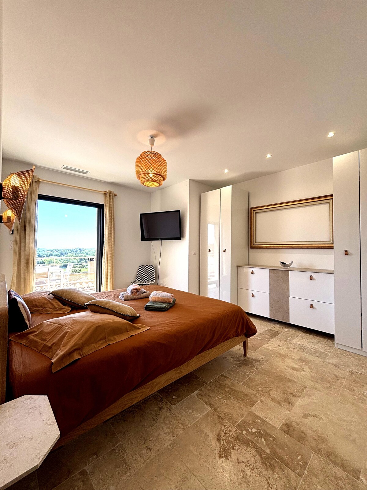 Upplev en unik upplevelse i ett autentiskt hus på pålar, beläget på höjden av den charmiga byn Beaumes-de-Venise, känd för sina viner och sina vinodlingslandskap. Detta 80 m² stora boende, helt luftkonditionerat, kombinerar provensalsk charm med raffinerad och elegant modern komfort. Perfekt för en romantisk tillflykt, en vistelse med vänner eller familj, bjuder det in dig att dyka in i vinets värld och det goda livet i Provence.