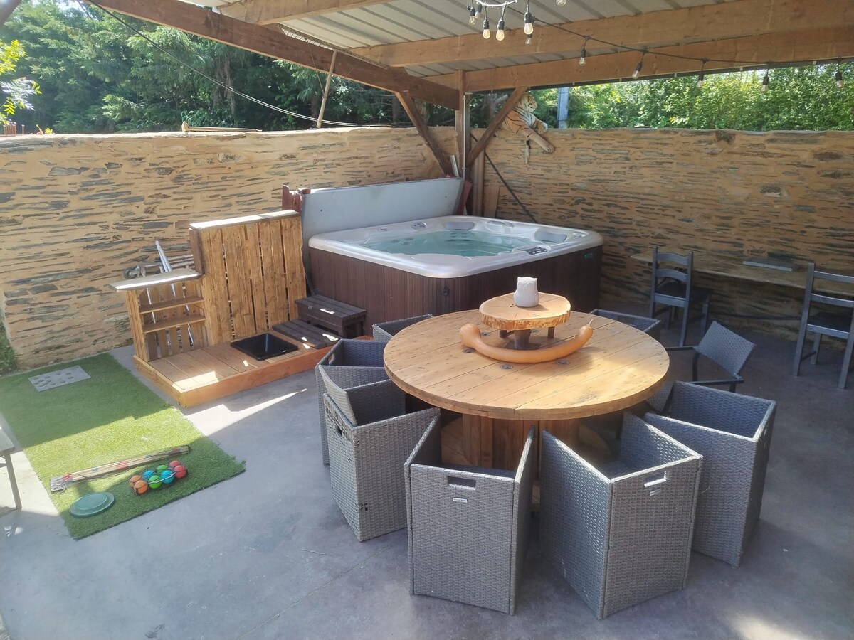 Renoverat hus med kvalitetsutrustning (2-sits balneo badkar, traditionell finsk bastu, etc.). Perfekt för avkopplande romantiska vistelser. Hus beläget 7 minuter från centrum av Angers i en lugn, trädbevuxen miljö och 500 meter från en park som erbjuder magnifika promenader. Besökare är inte tillåtna. Vi ber våra gäster att säkerställa lugn och respekt för lokalerna för komfort för grannar och framtida hyresgäster, tack på förhand:)