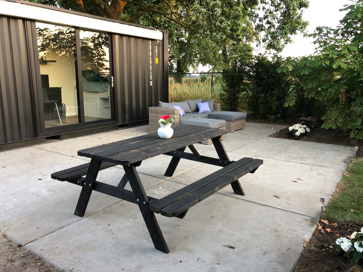 Upptäck det vackra landskapet runt detta boende. I denna kompakta ombyggda container kan du koppla av helt. Denna stuga ligger direkt vid skogsbrynet, omgiven av jordbruksmark med utsikt över upp till 4 km. Det finns otaliga vandrings- och ridleder i det intilliggande naturreservatet. Det finns gott om avskildhet, med egna faciliteter och en stor terrass. Den moderna inredningen ger en lyxig känsla.