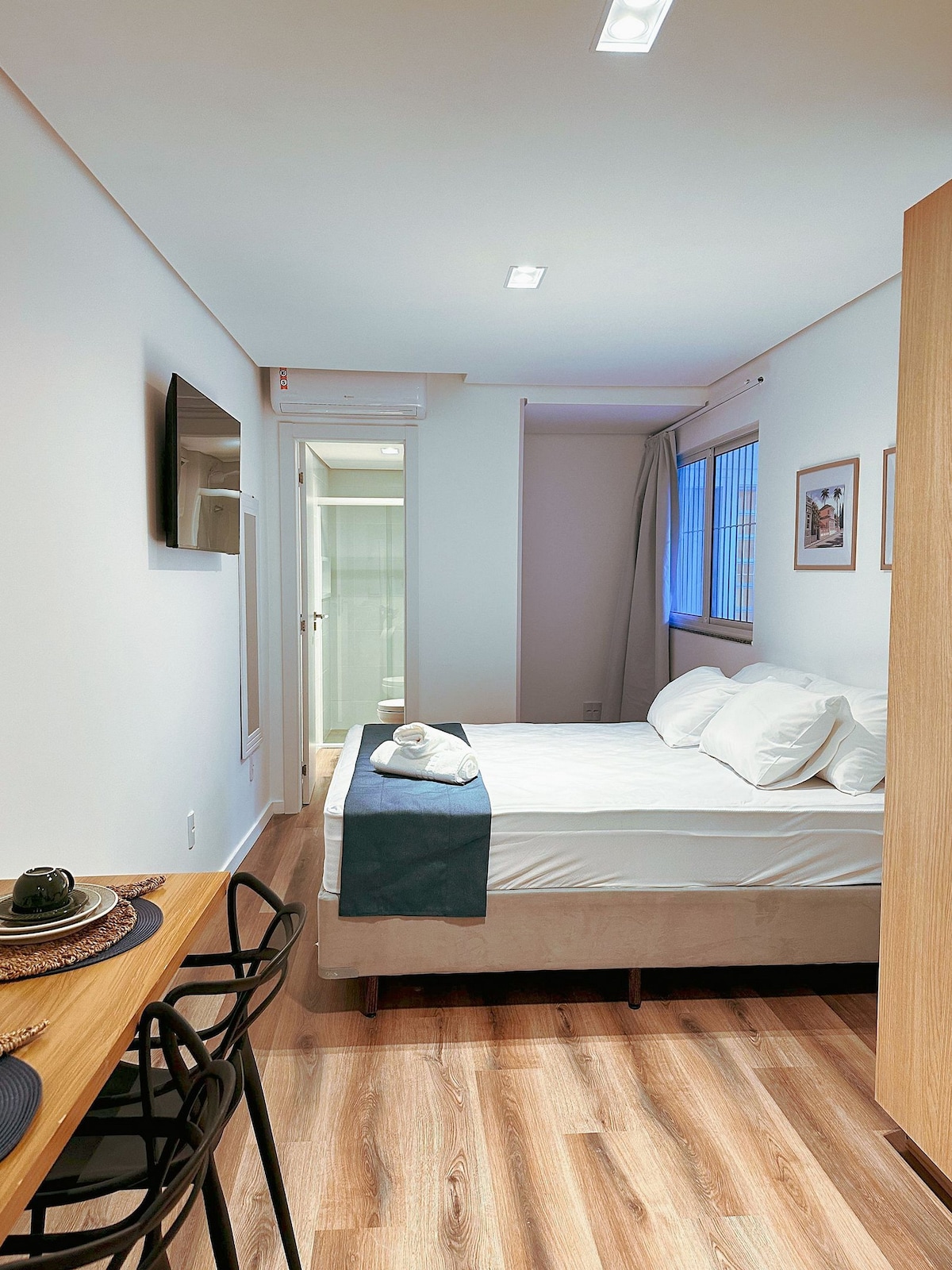 Letar du efter en mysig incheckning i hjärtat av staden? Du kommer att känna dig som hemma i detta välplanerade loft. Beläget i centrala Florianopolis, är det perfekt för någon som vill utforska ön eller delta i ett evenemang i närheten. Inkluderar: - Queen size-säng - Komplett gourmetkök - Tvättmaskin och torktumlare - Stort bord för måltider och hemmakontor - 360 Rotations-TV så att man kan titta från var som helst på loftet - Rent och modernt badrum - Wi-Fi - Fullständig luftkonditionering