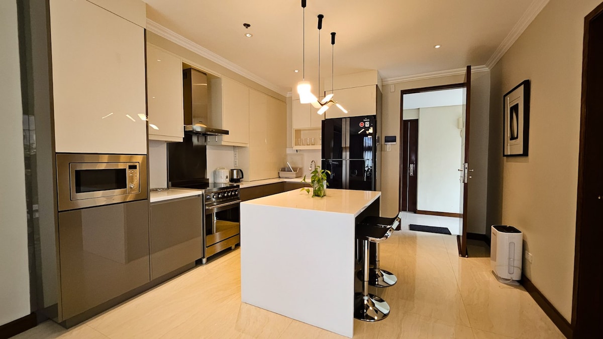 Upplev lugn i vår helt nya, frodiga gröna lägenhet med balkong på Air Residences, mitt i Makati. Njut av höghastighets-WiFi på 600 Mbit/s och varva ner med Netflix | HBO | Disney på en 65-tums TV. Sov gott på en lyxig säng med premiumkuddar. Lägenheten är utrustad med väsentliga apparater: tvättmaskin, hårtork, kylskåp, mikrovågsugn, risspis och köksredskap. Njut av gratis kaffe från Nespresso-maskinen med hisnande solnedgångar över Manila Bay.