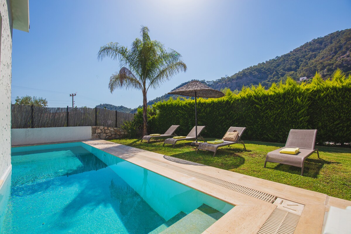 Om du bor i denna centralt belägna plats, kommer du att vara nära till varje plats som en familj. Konceptet med en skyddad privat poolvilla där du kommer att vilja tillbringa en trevlig semester med din familj och nära och kära inom gångavstånd till din döda kropp. Det finns en 24/7 säkerhet och reception service , en alacarte restaurang där du kan beställa från din villa. Villa koncept med skyddad privat pool där du kommer att vilja tillbringa en trevlig semester med din familj och nära och kära, inom gångavstånd från Ölüdeniz.
