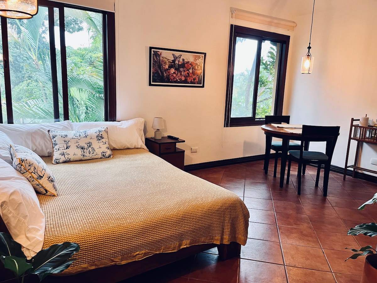 Charmig, modern och omgiven av naturen. Beläget i ett centralt men lugnt område, centrum för rörelse till de viktigaste provinserna, perfekt för dem som söker lugn utan att lämna staden; nära affärspark, företagsområden, Pedregal och några minuter från flygplatsen, vilket gör det perfekt för affärsresenärer. Med snabbt Wi-Fi, stabil och en trädgård full av liv, där du kan se kolibrier, bin och fjärilar som livnär sig på blommorna.