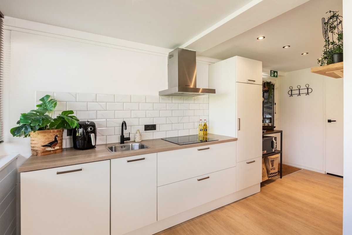Huize Carmiggelt är ett högkvalitativt färdigt fritidshus på 40 m2. Det är inrett i femtornas stil, men har alla dagens bekvämligheter. Köket och badrummet är moderna och det finns centralvärme och wifi. Huize Carmiggelt ligger i utkanten av en lugn semesterpark, direkt i anslutning till skogen (Hoge Kempen nationalpark). Maastricht ligger bara 15 minuter bort med bil. I närheten finns många promenad- och cykelmöjligheter. En perfekt plats för en Get-A-Way för två!