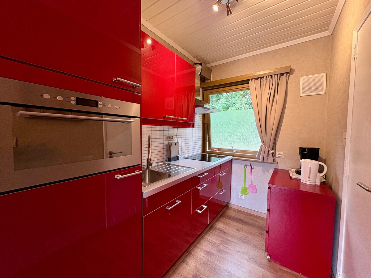 Chalet with beautiful sun terrace overlooking the Maas, free parking for 2 cars at the chalet and a covered bicycle storage out of sight. A dog is allowed but we don't like the smell of dogs in the Chalet. You will discover the picturesque Meuse villages and taste the real Limburg conviviality near the Hoge Kempen National Park, Maasvallei River Park and the Aldeneyck wine domain. It is the ideal base for cycling through the water, visiting Maastricht or getting pampered at Elaisa Wellness.