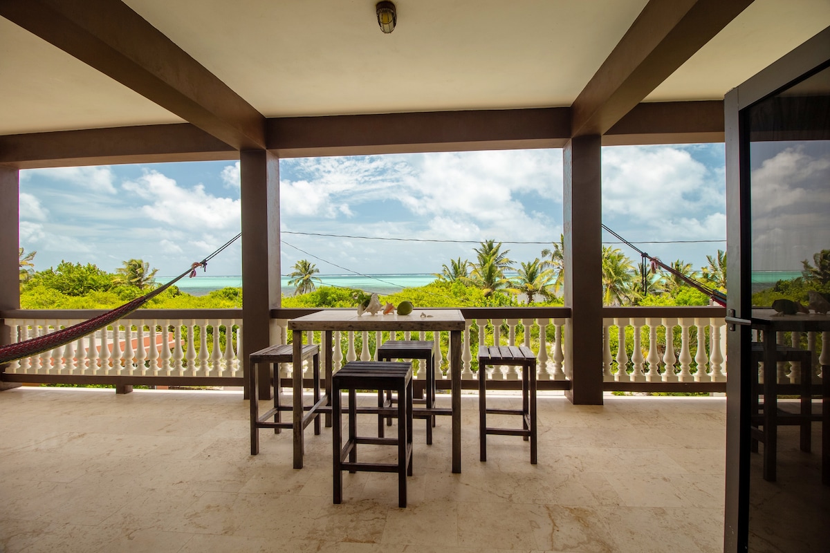 Secluded South Side Retreat with Sunrise Views over the Barrier Reef Bella Mar is an oceanfront home with a 3 bedroom 4 bath upper villa and 2 - 1 bedroom 1 bath lower casitas for a total of 5 Bedrooms and 6 Bathrooms. The property includes a large private pool and plenty of outdoor living area, including a large pool side palapa. Located 3 1/2 mile south of San Pedro Belize, 15-20 minutes by golf cart from downtown.