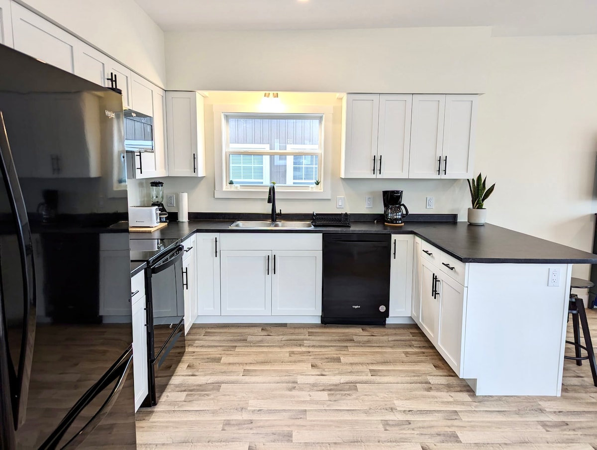 Fly till vårt paradis vid havet i St. Ann's Bay på natursköna Cabot Trail! Detta helt nya, rymliga 2-bäddsboende erbjuder modern design och öppet koncept. Sovplats för 6 personer med ett sovrum med queen-size-säng, ett sovrum med våningssängar (dubbelsäng längst ner och enkelsäng högst upp) och en utdragbar soffa. Njut av fantastiska solnedgångar, bergsutsikt och enkel tillgång till sightseeing, vandring, båtturer och restauranger. Fördjupa dig i charmen och skönheten i Cape Breton, och skapa oförglömliga minnen under din vistelse.