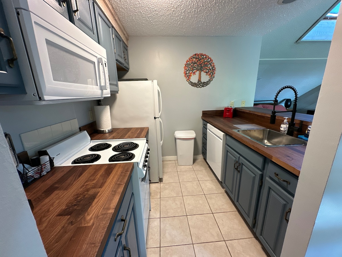 Denna lägenhet är en ändlägenhet med utsikt över golfbanan Shanty Creek och sjön Bellaire. Njut av modern inredning, skinnsoffor, ett fullt utrustat kök (kylskåp, spis, ugn, diskmaskin, kaffebryggare, varmvattenberedare, mikrovågsugn och brödrost), alla TV-apparater är Amazon Fire så logga in på ditt prime-konto, och du får tillgång till Netflix, Youtube, Disney+ eller någon annan streamingtjänst du prenumererar på. Mys bredvid en vedeldad öppen spis (ved går att köpa till Family Fare eller lokala gårdar).