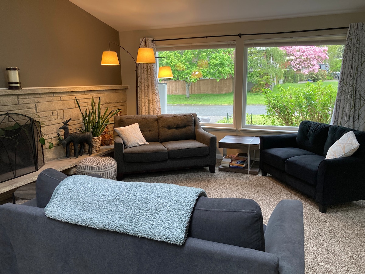 Underbart enfamiljshus beläget mellan Seattle och Bellevue på Mercer Island. Du kan njuta av alla bekvämligheter Seattle området erbjuder boende i en lugn miljö omgiven av den vackra Lake Washington! Två minuters promenad till stranden. Mercer Island är fantastiskt att cykla – vi har tillhandahållit 2 vuxna cyklar och 2 barncyklar, tillsammans med hjälmar. Att utforska den vackra Pacific Northwest är så enkelt härifrån; Mt. Rainier, Olympic Peninsula, San Juan Islands ligger alla inom 2 timmar.