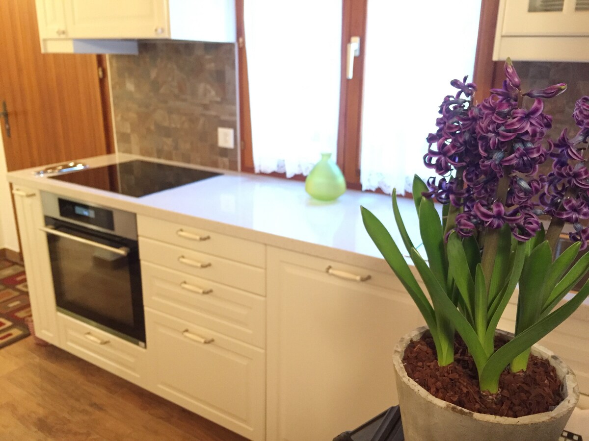 Helt ny. Modern lägenhet med designermöbler. WI FI TW Screen 75 I Phillips Ambilight System Home Cinema Bose. Modernt kök Glas Induktion Keramisk Diskmaskin Kylskåp Mycket stor Coiler Värmare Thermo Photovoltaic Pump, Två badrum Dusch och badkar Triple True Dubbelsäng Plus bäddsoffa i Audio Plus soffa. Total vardagsrumssäng för 6 bekväma sängar 2 parkeringsplatser box Elegant och tyst kiseldioxid vattenfall i närheten utmärkta promenader