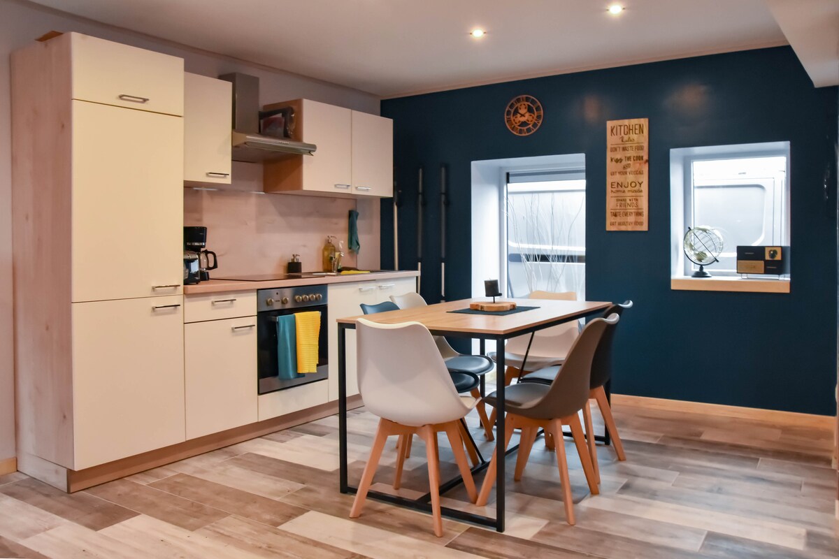 Trevligt litet hus med karaktär och charm, borta från vägen, tillägnad 2 personer, med trädgård (trädgårdsmöbler och bord) och grillplats. Gratis parkering utomhus. Möjlighet att komma in i cyklarna. Bottenvåning : vardagsrum med vardagsrum och eldpellets, utrustat pentry, kyl- och frys, spis, mikrovågsugn, huva, ugn, senseo. Övervåning : sovrum med 180x200 säng, garderob, badrum : toalett, dusch och badkar. Många turistaktiviteter!