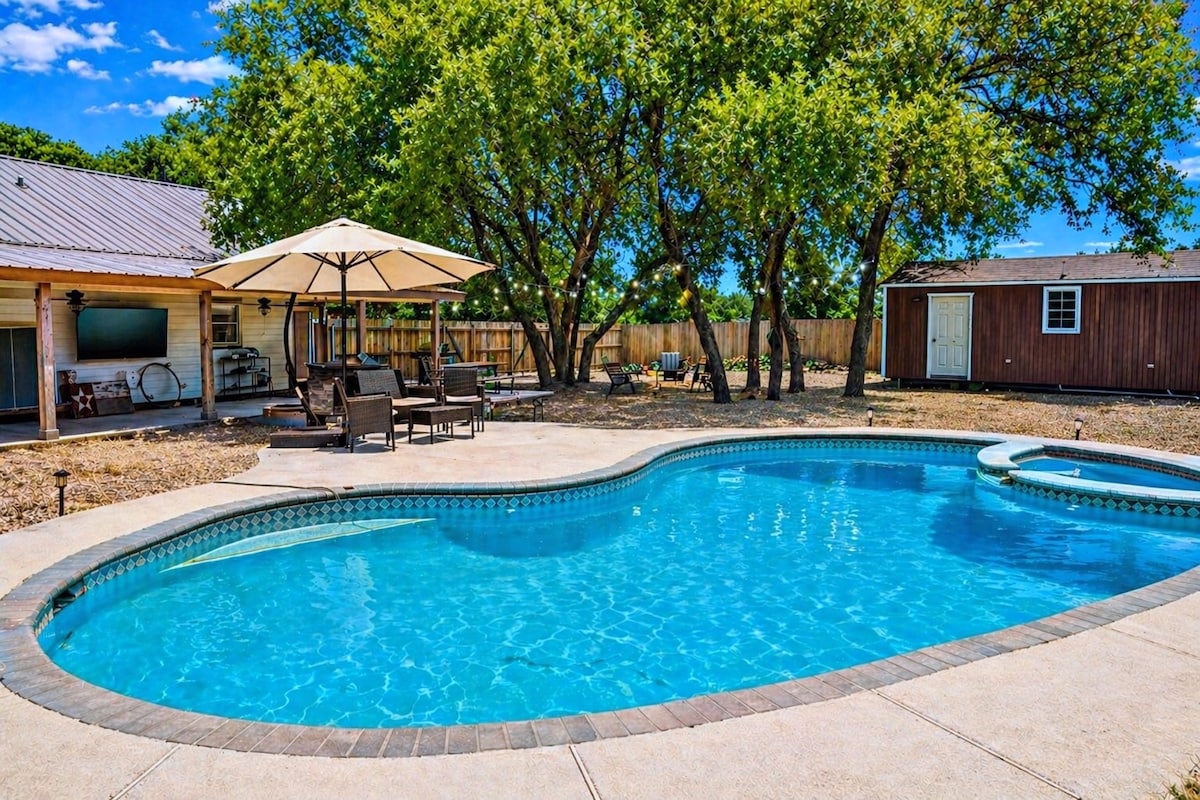 Ta med hela familjen till detta fantastiska ställe med massor av plats för skoj. Ligger bara några steg från Stillhouse Hollow Lake. Njut av den gnistrande poolen, den mysiga bubbelpoolen och de andra samlingsplatserna för skoj och fritid. På samma sätt har insidan av hemmet ett öppet koncept och ett garage som omvandlats till ett spelrum, allt perfekt för underhållning. Varje gäst kommer garanterat att ha roligt och skapa många minnen. Detta är det bästa stället att leka hårt och koppla av ännu hårdare!
