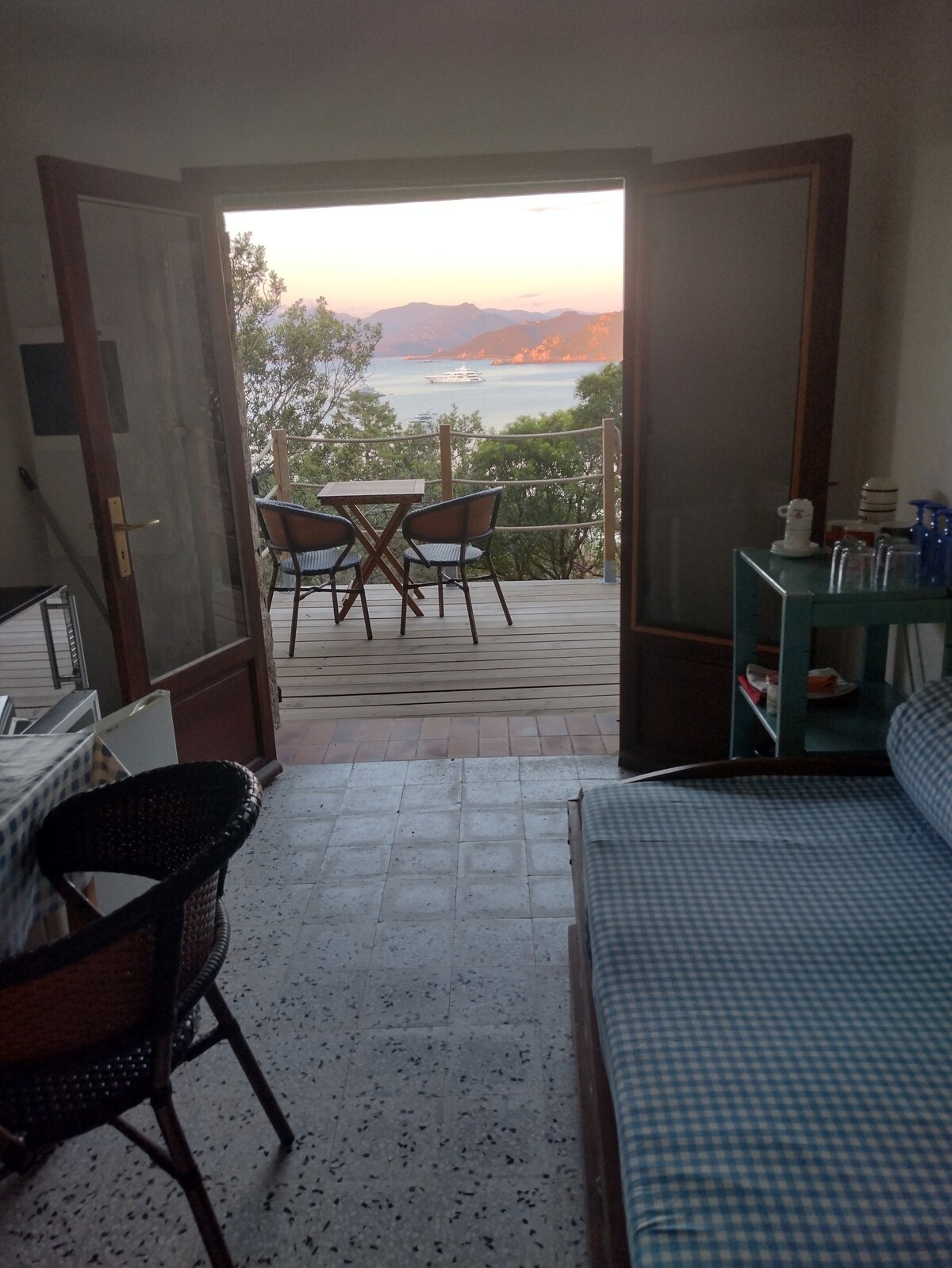 Vacker terrass med havsutsikt Du kommer att tillbringa en lugn vistelse i maquis på marknivå i trädgården naturligt fräsch med enkelsängar 5 minuters promenad från en vacker strand en km lång i botten av en skyddad vik där du hittar en dykklubb och möjlighet att hyra kanoter eller båtar med och utan licens Nära en kuststig på en vild kust för dina naturpromenader En livsmedelsbutik 5 minuter bort och 4 restauranger wifi till ditt förfogande