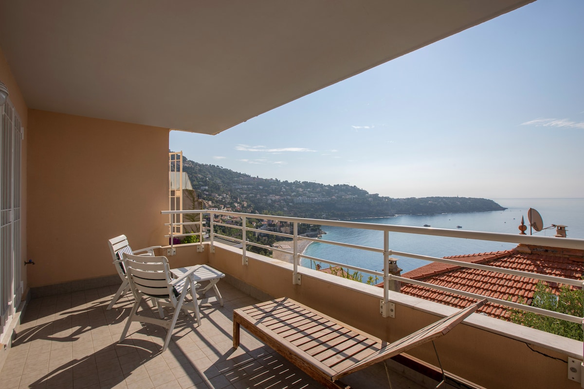 Mysig 28 kvm studio för 2-3 personer med beboelig balkong och direkt tillgång till havet. Det är 5 minuters promenad från stationen, 10/15 från huvudgatan (5 med bil) där du hittar butiker, ett informationskontor och bussar. Porten till bostadsrättens trädgård öppnar mot den vackra stigen som går längs havet (sentier du Littoral), 5,5 km lång, som förbinder Plage Mala (15 min), utrustad med parasoll, solstolar och barer/restauranger, till Monaco (25 min)