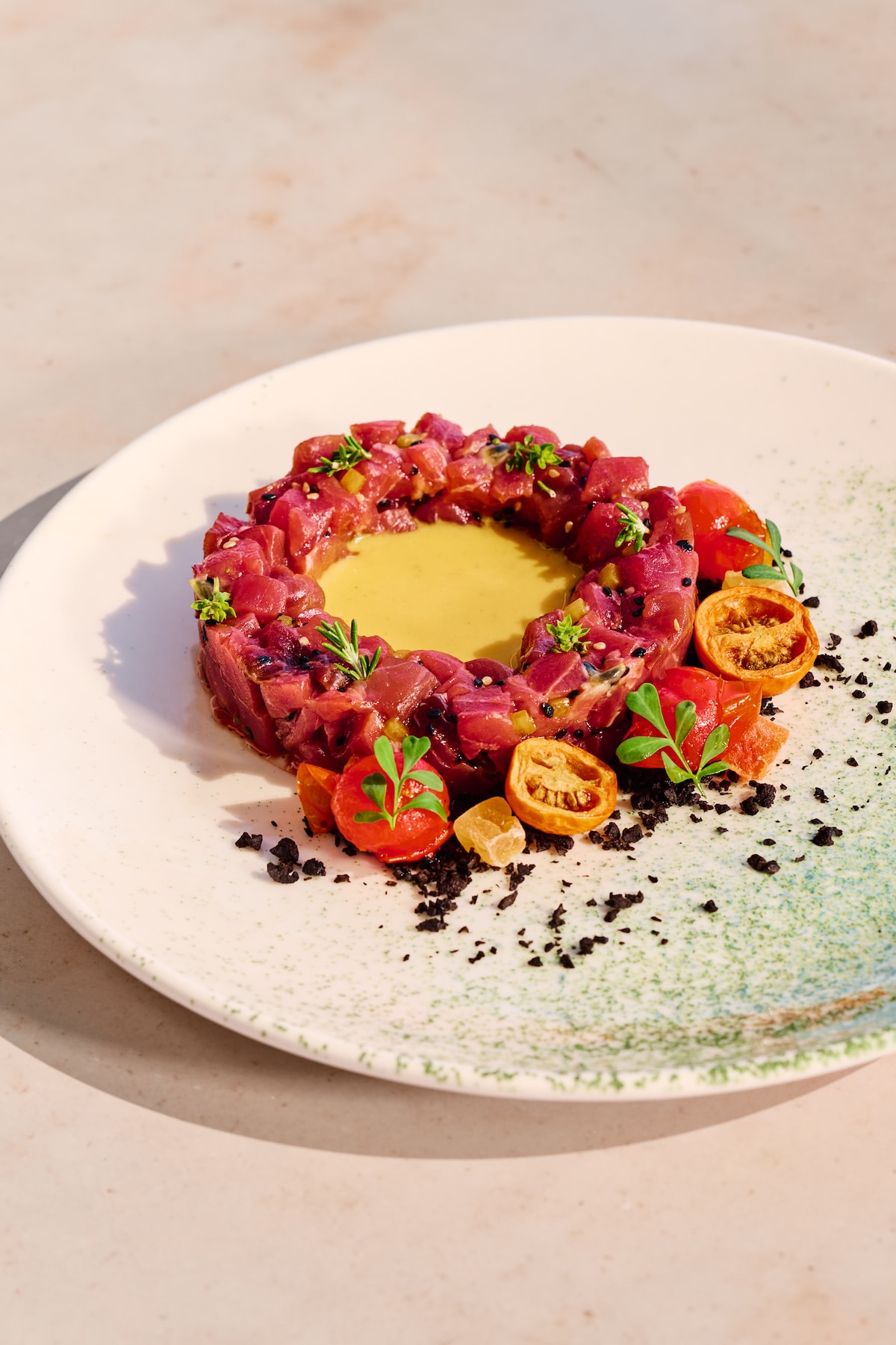 Fusionskök med ekologiska ingredienser och internationella tekniker.