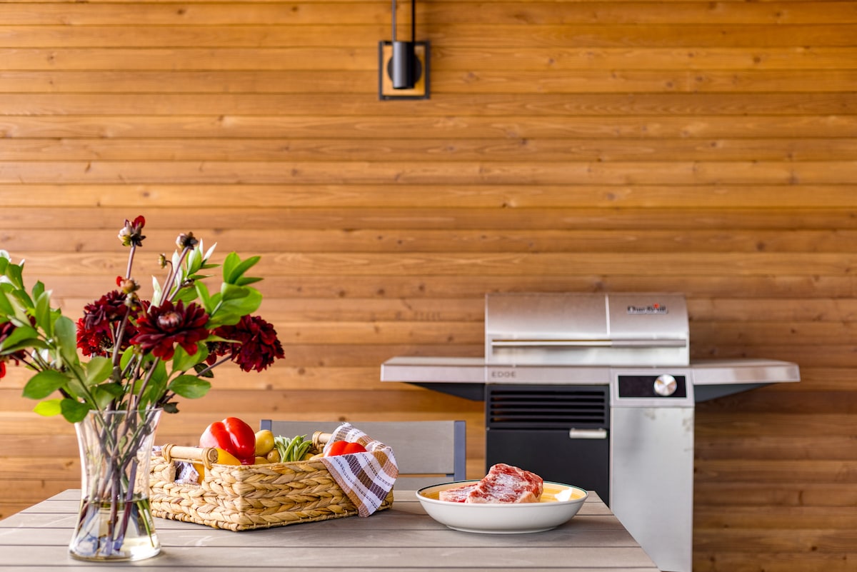 **NYINSTALLERAD! ** Spa- och bastugrotta är redo för din romantiska Bend-semester! Denna lugna, skogiga, centralt belägna, fristående bungalow ligger några steg från Deschutes River trail, bekvämt gångavstånd till Mill Dist. och Hayden Amphitheater. Det har en bekväm dubbelsäng med premium sängkläder och kuddar, dedikerad gratis parkering (inkl. extra bilar eller liten husbil), utomhusmatplats och uteplats, tvättmaskin/torktumlare och kök fullt utrustat med allt du behöver för skoj och avkoppling för alla årstider!