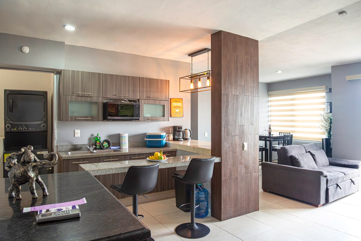 Njut av Cancún från denna bekväma och funktionella lägenhet, perfekt för avkoppling eller arbete på distans. • Luftkonditionering i alla områden • WiFi och Netflix ingår • Simbassäng i lägenhetshus • Strategiskt läge intill Plazas Outlet • 10 minuters promenad till Walmart och stormarknader • 15 minuter med kollektivtrafik till hotellzonen och stränderna • Lägenhet med hiss och enkel tillgång 🚍 Kollektivtrafik i närheten • 🛒 Butiker inom gångavstånd
