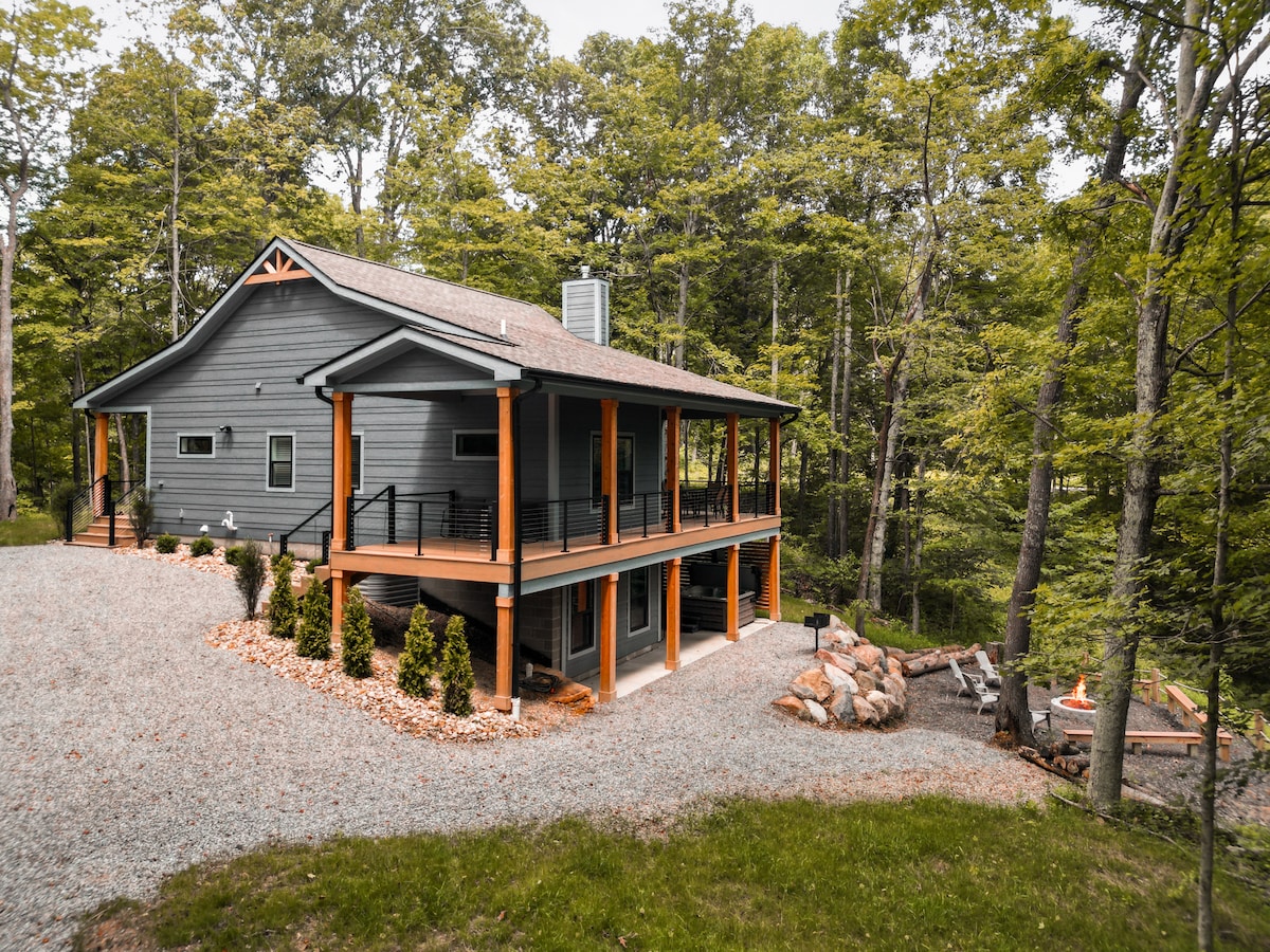 Emerald Edge Hocking Hills Midcentury Cabin med bubbelpool