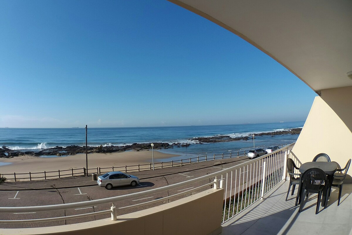 En studiolägenhet med härlig havsutsikt... Denna lägenhet har en hisnande utsikt hela vägen till Durban. Den har en 48 smart-TV med Netflix. Den har både ett tak och fristående fläktar. De stora fönstren som glider öppna möjliggör en fantastisk utsikt. Denna enhet ligger direkt ovanför badstranden och klippdammen. Denna enhet kommer också med obegränsat WIFI. Handdukar, kaffe, te ingår också. Du behöver bokstavligen bara ta med dina kläder.