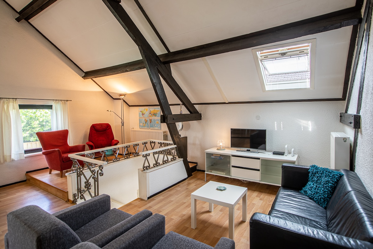 Lägenheten ligger på första våningen och nås via en yttre trappa. Här finns också en liten terrass som kan användas. Väggarna är invändigt putsade med lerputs, golvet är belagt med golvbrädor. Lägenheten ligger på en lugn sidogata. Kollektivtrafik (buss och tåg) finns i omedelbar närhet. En regelbunden förbindelse till Aachen, Herzogenrath eller Nederländerna kan nås på 10-15 minuters promenad.