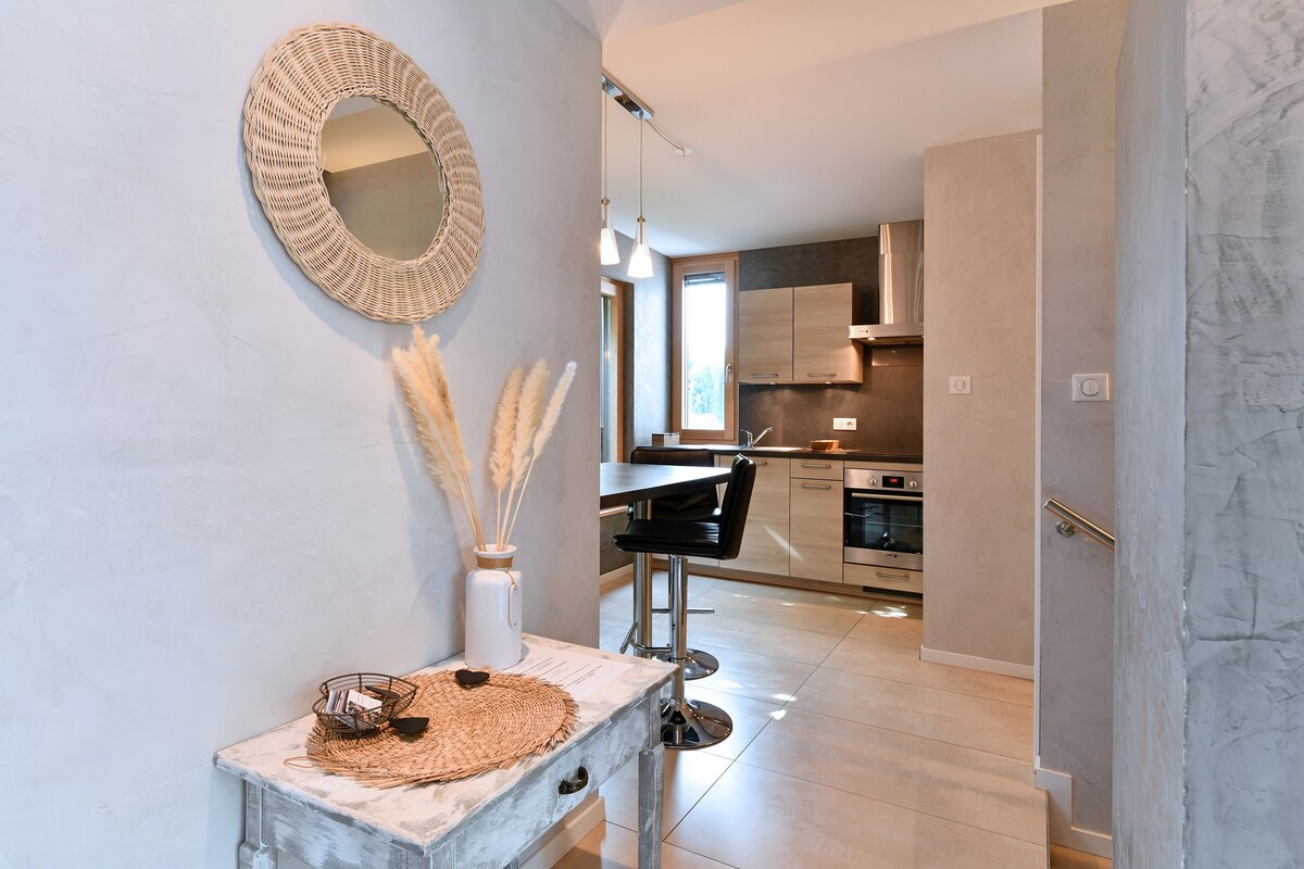 Kom och tillbringa en trevlig vistelse i Alsace i detta typiska gamla stall, helt renoverat 2020. Nära Europapark (30 min) - i centrala Alsace - är du idealiskt belägen för att besöka regionen. Privat spa och bastu (bokningstider för mer lugn) Ett gemensamt kök finns också till ditt förfogande. Ankomst möjlig från kl. 16.00. Avresa före kl. 11.00. Vi ses snart i Alsace!