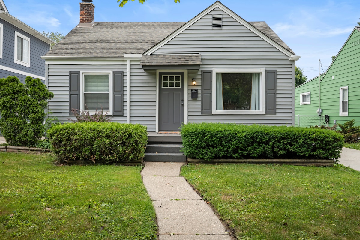 FERNDALE FAVORIT!! Gå till centrum! Alla nya möbler/inredning, lyxiga sängkläder, minnesskumsängar, kvartsbänkskivor... superrena och välskötta. Detta bekväma, nyrenoverade hus ligger på en lugn gata bara några kvarter från restauranger, barer, kaféer och mer. Centralt beläget med enkel tillgång till motorvägar, 10-15 minuters bilresa till andra centrala områden (Royal Oak, Detroit, Birmingham). Perfekt för par, affärsresenärer, HBTQ+ och familjer med barn. Vi tillåter också SMÅ husdjur (under 20 lbs).