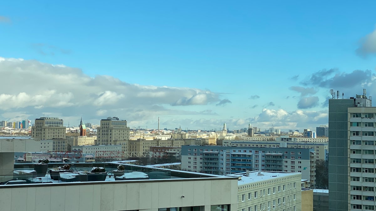 Solig loftsbalkong på översta våningen + utsikt över Prenzlauer Berg