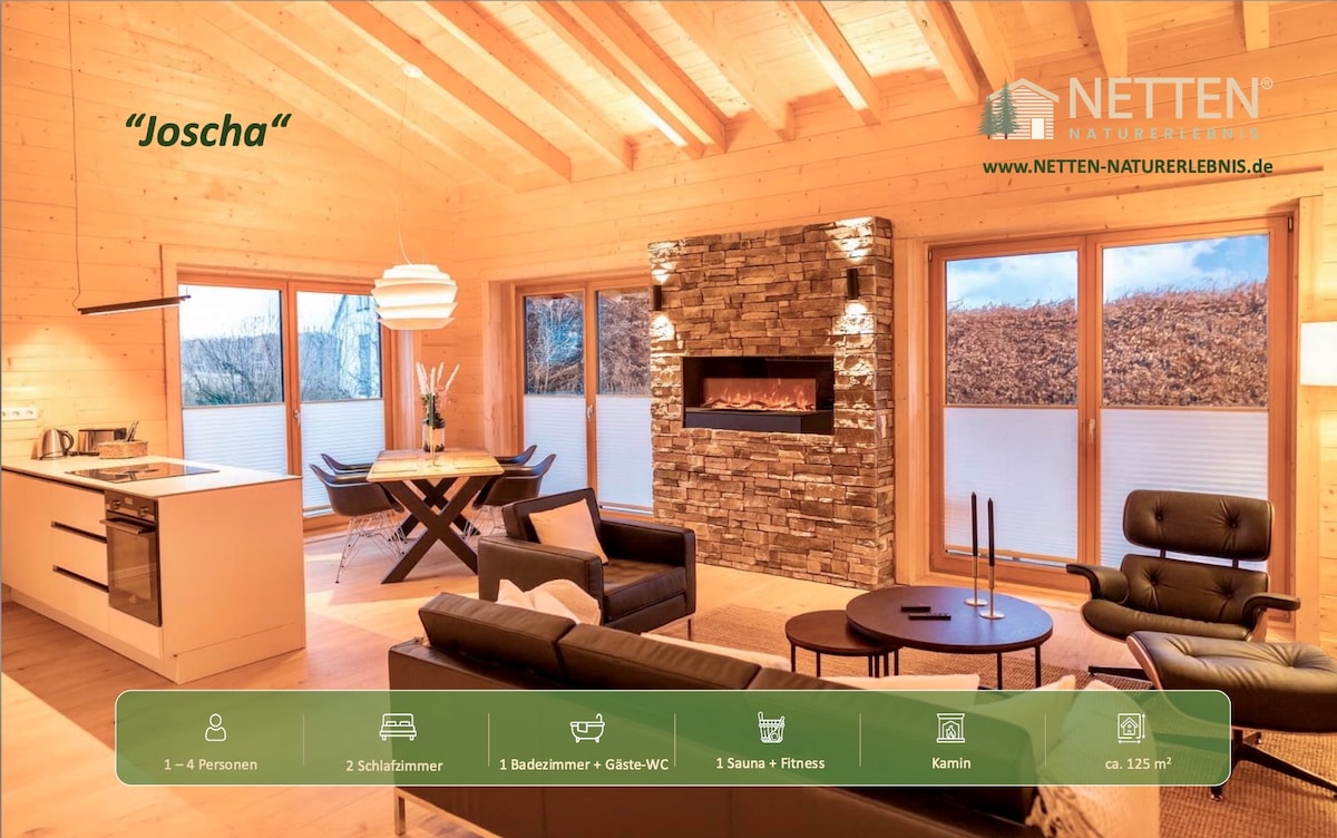 Trähuset är lämpligt för familjer och vänner med upp till 10 vuxna. Boendet ligger mellan "Maare" (vulkaniska sjöar) i Vulkaniska Eifel nära Nürburgring och erbjuder: bastu för 5 personer, 2 vinterträdgårdar, en med en popup-pool, utomhus vedeldad bubbelpool, eldstad, lekplats, studsmatta, fitnessutrustning i huset, bordsfotboll, bordtennis i det stora dubbelgaraget, Netflix, vägglåda för elbilar. 2 barnsängar och 2 barnstolar finns tillgängliga.