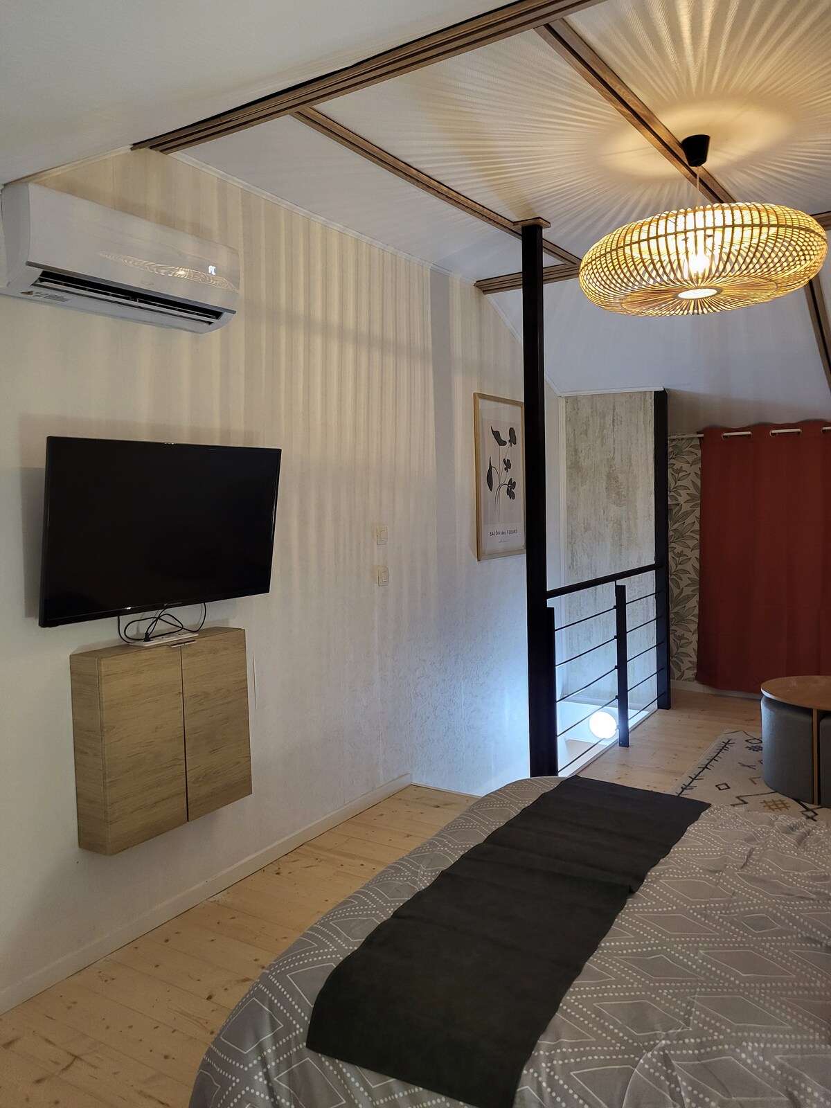 Mitt i en privat gränd i hjärtat av staden Saint-Dizier, upptäck detta boende som kombinerar charm, komfort, lugn och modernitet. Dess bekväma och eleganta rum har också en stor säng och en välkomstbricka med te och kaffe. Du kommer att njuta av att förbereda dina måltider i dess stora fullt utrustade kök. Ett stort omklädningsrum och ett vackert badrum erbjuder dig högkvalitativ komfort. Jag vill gärna vara värd för dig!